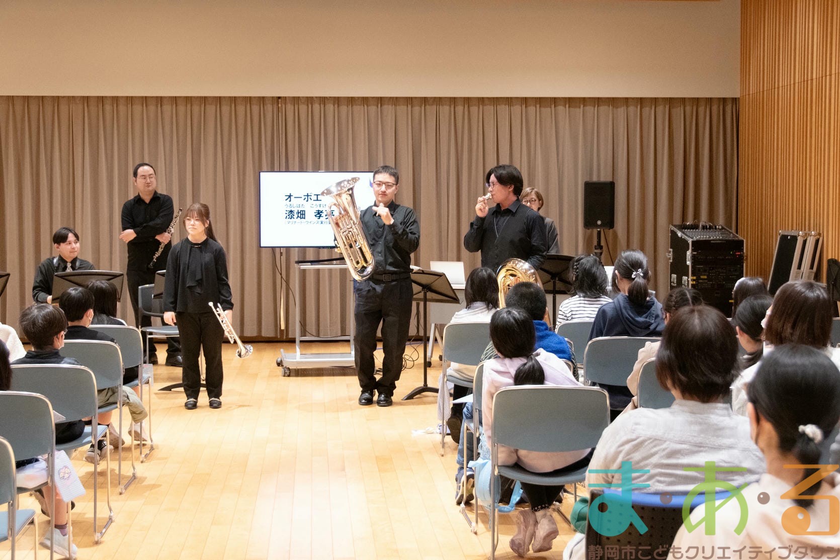 オーボエ奏者の漆畑先生に進行をしていただき、それぞれの楽器の説明をしていただきました。