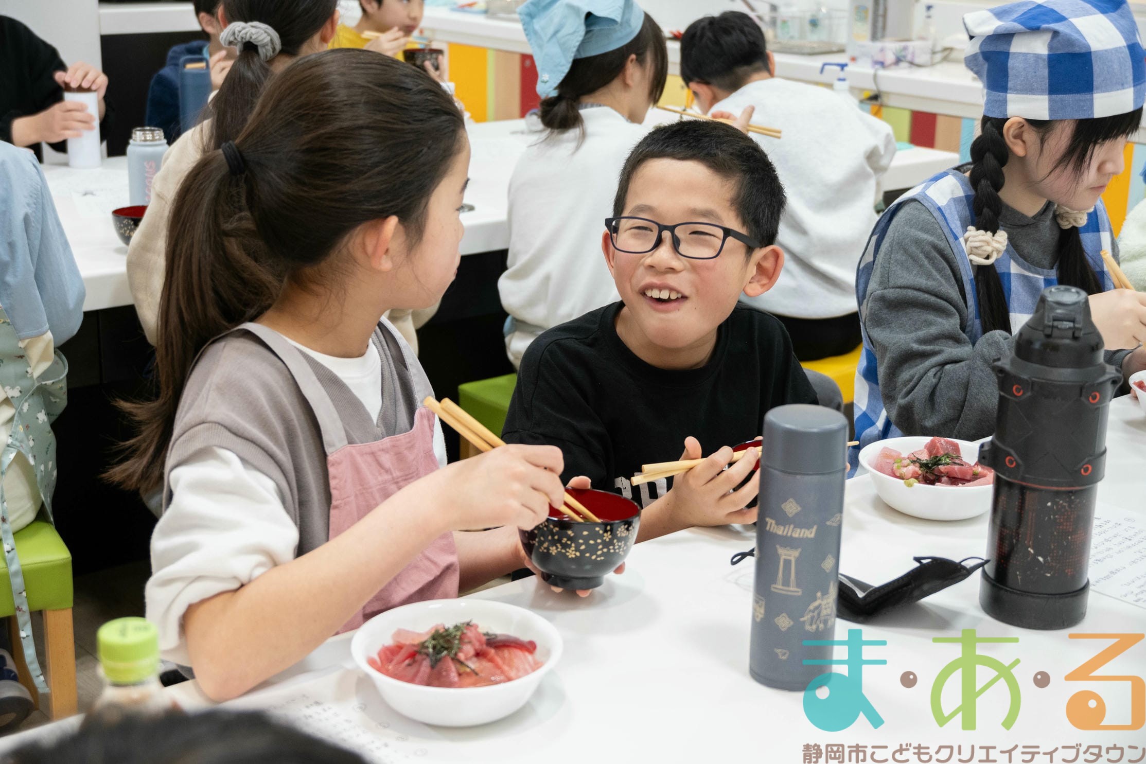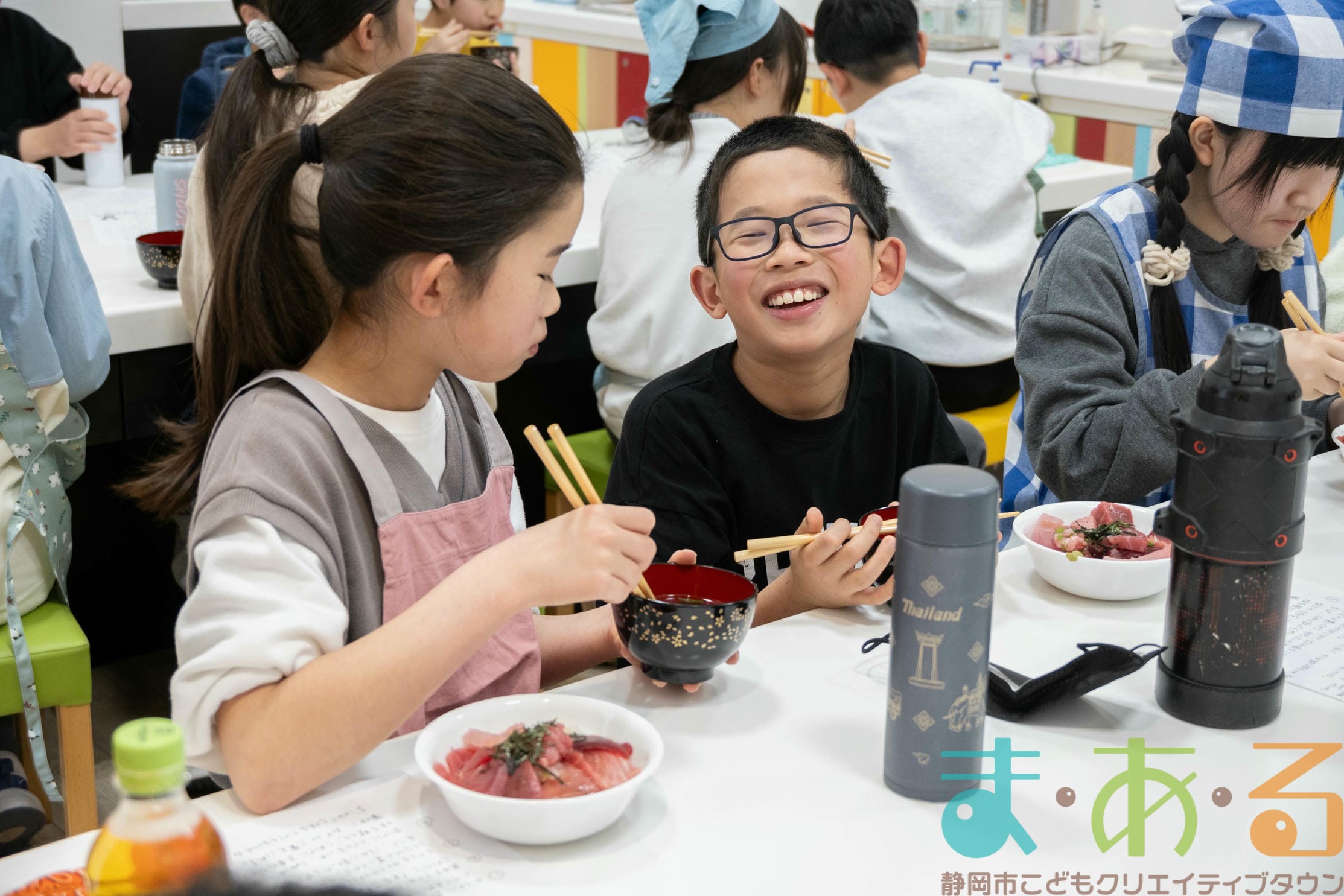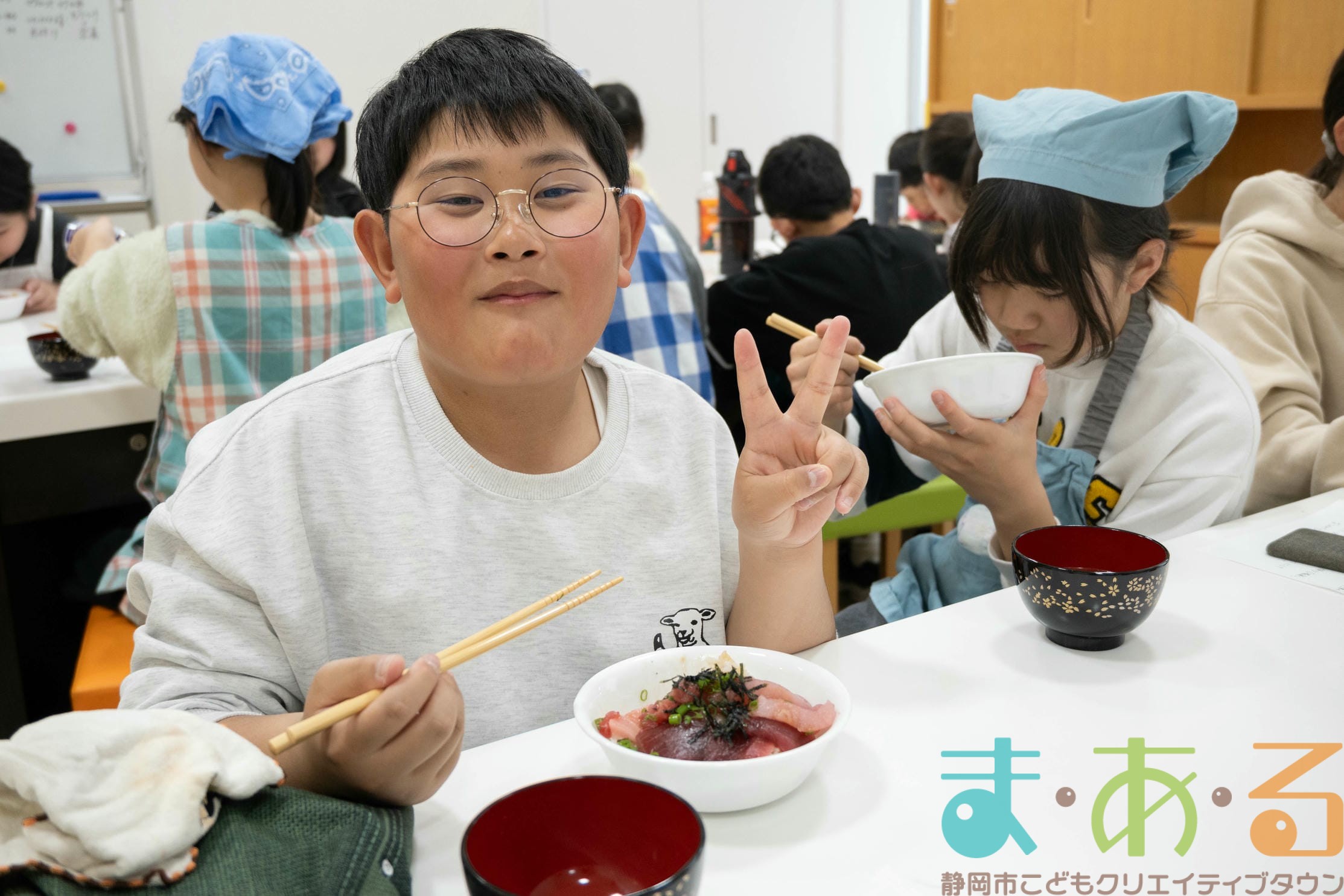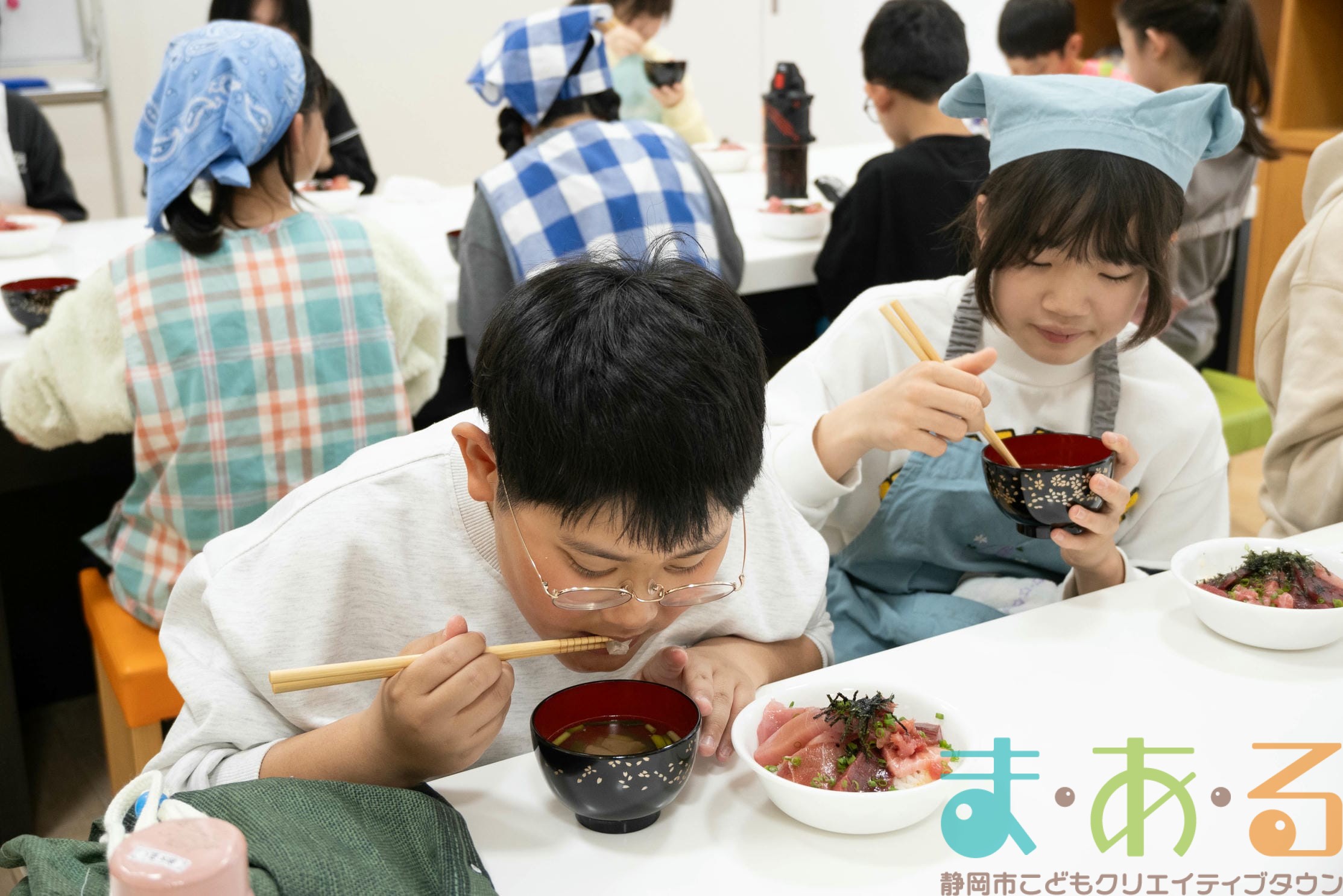 「すっごく美味しい!」「口のなかでとける~!」「マグロ汁は初めてだけど、すごく美味しい!」みんな夢中で食べ続けます。