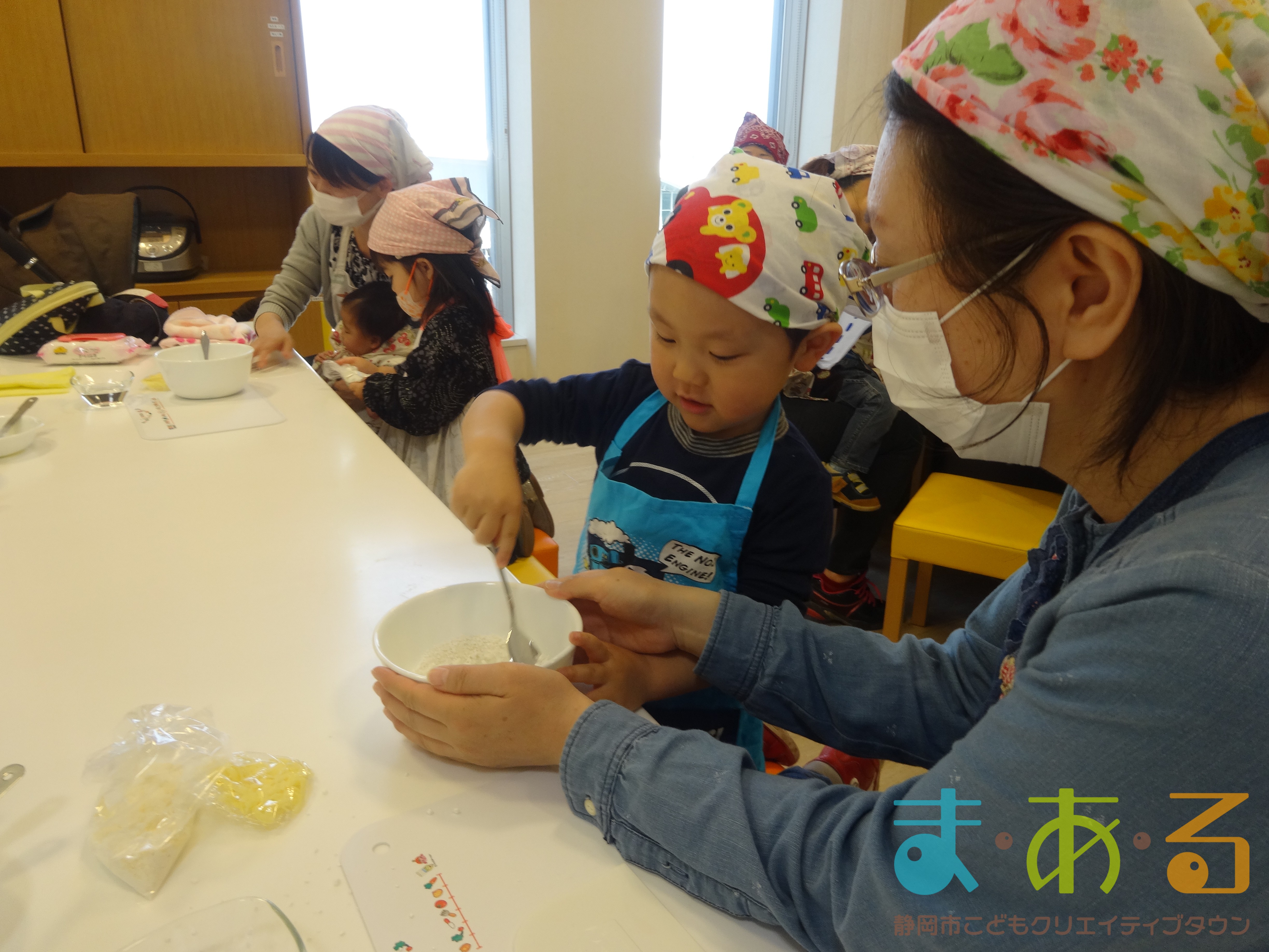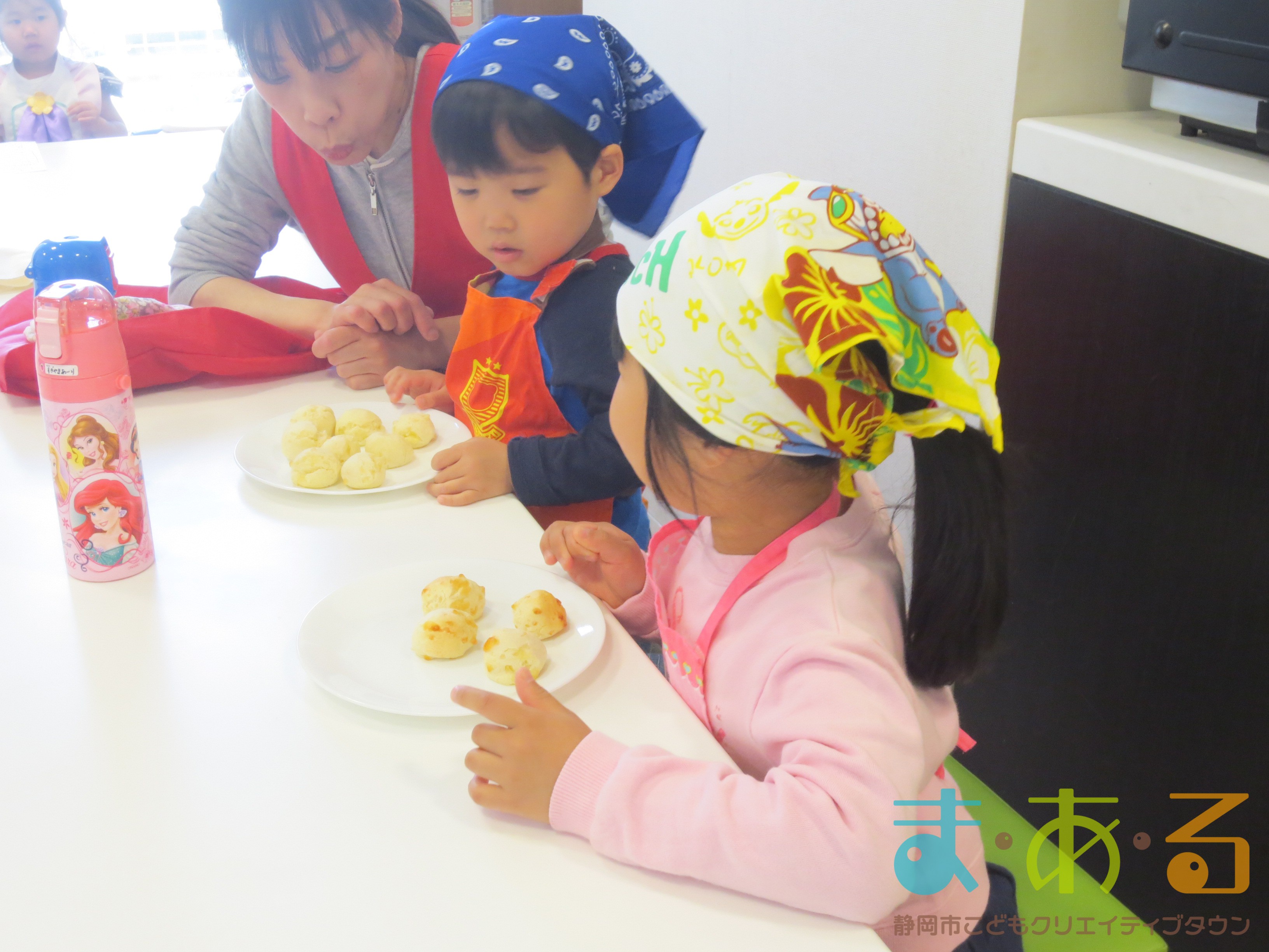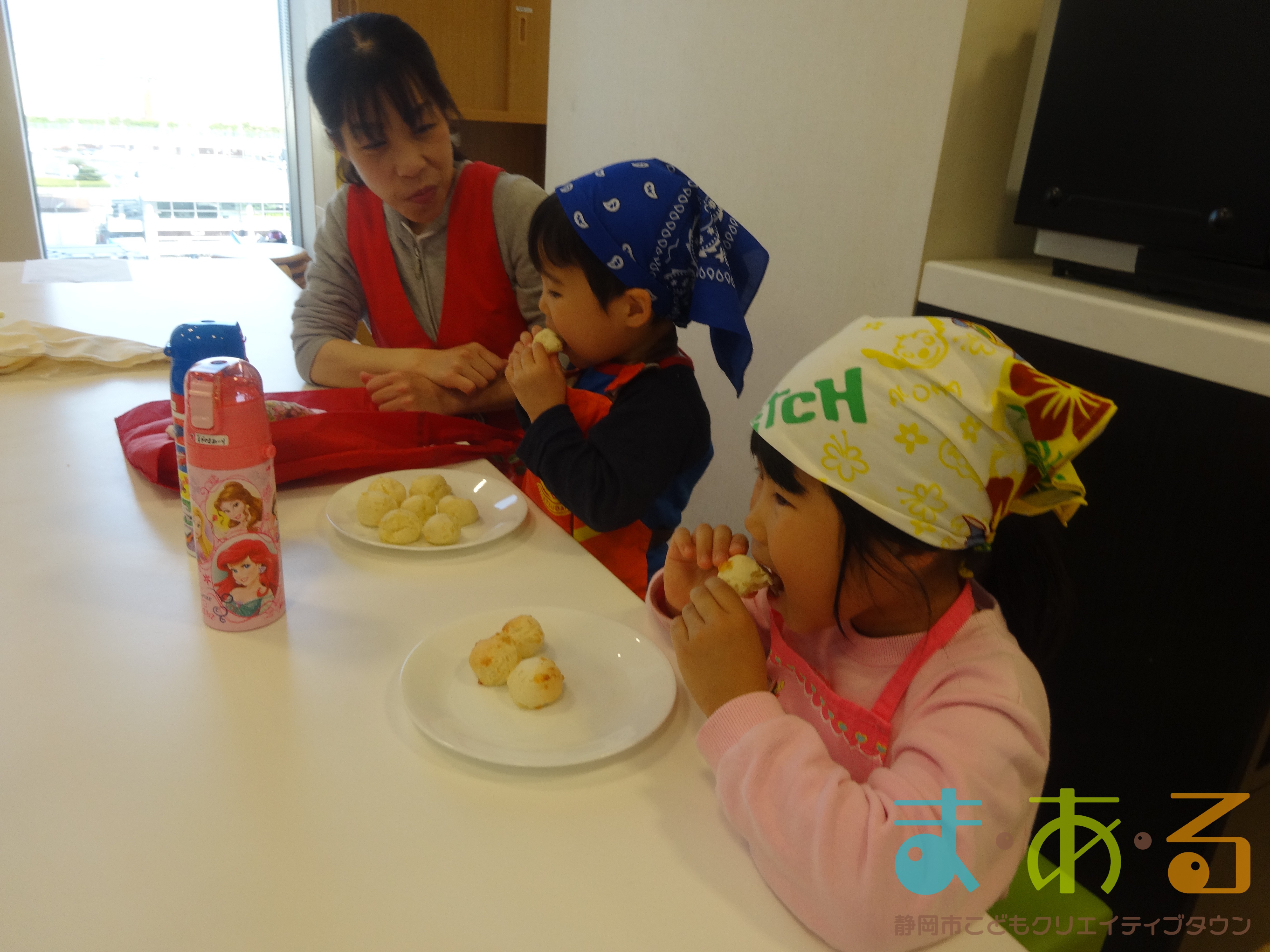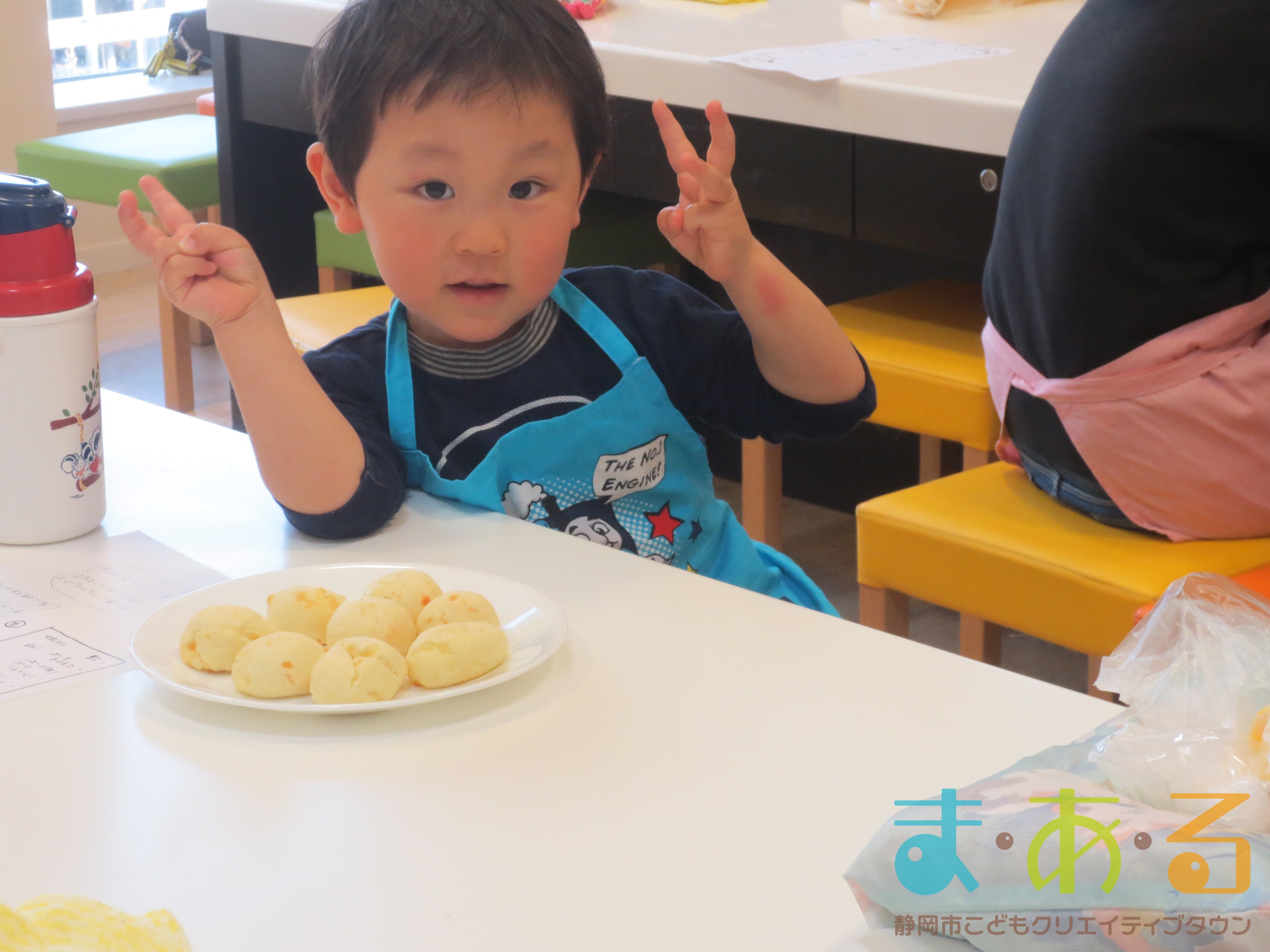 今年度初めてのかんたん♪クッキング講座は、ブラジルの「ポンデケージョ」のようなもちもちチーズパンづくりに挑戦しました。
