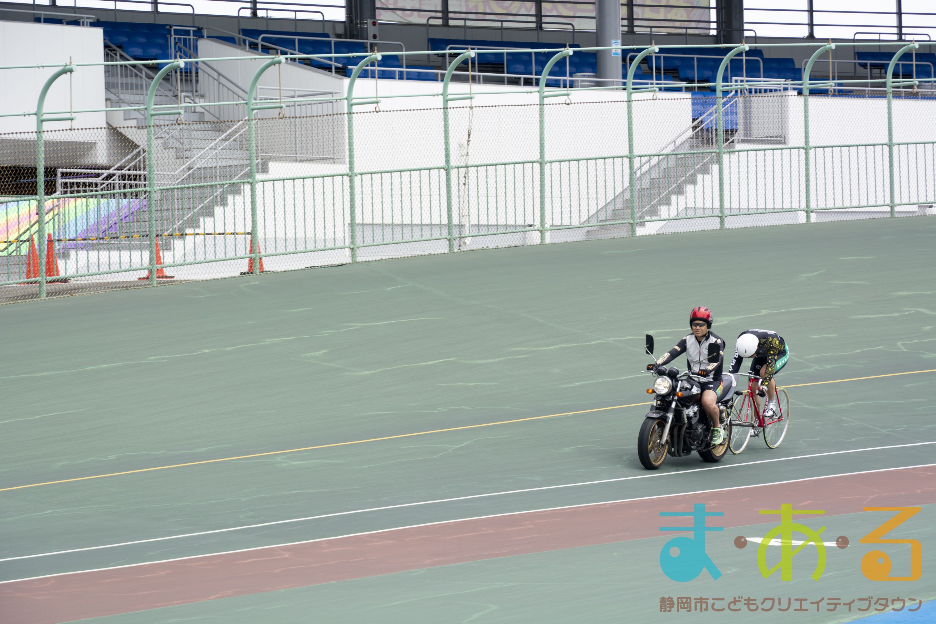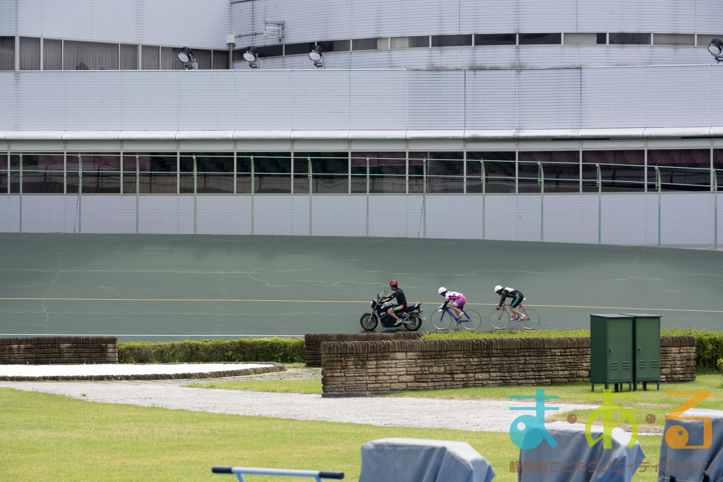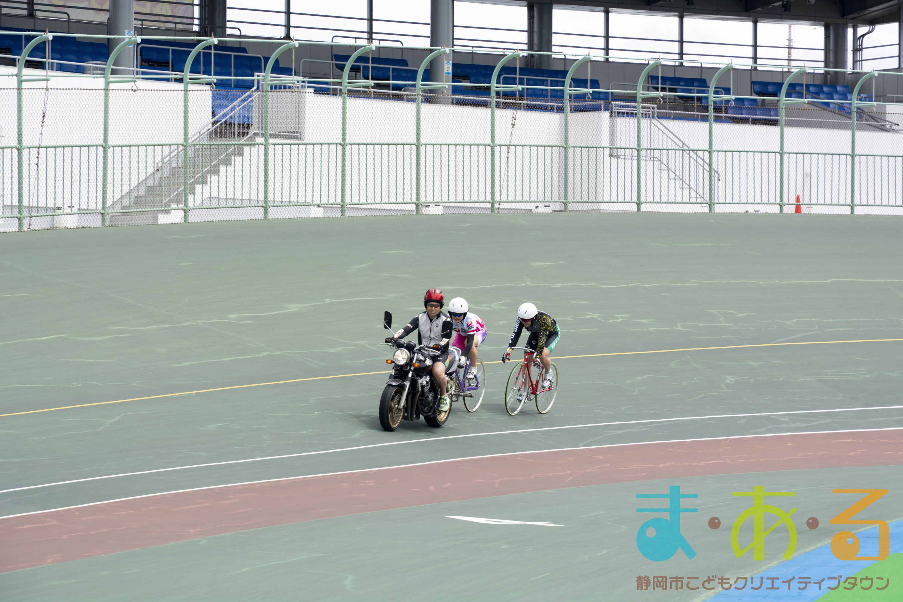 競輪選手が走るとすぐ戻ってくるコースでも、こどもたちが走るとすごく時間がかかります。
