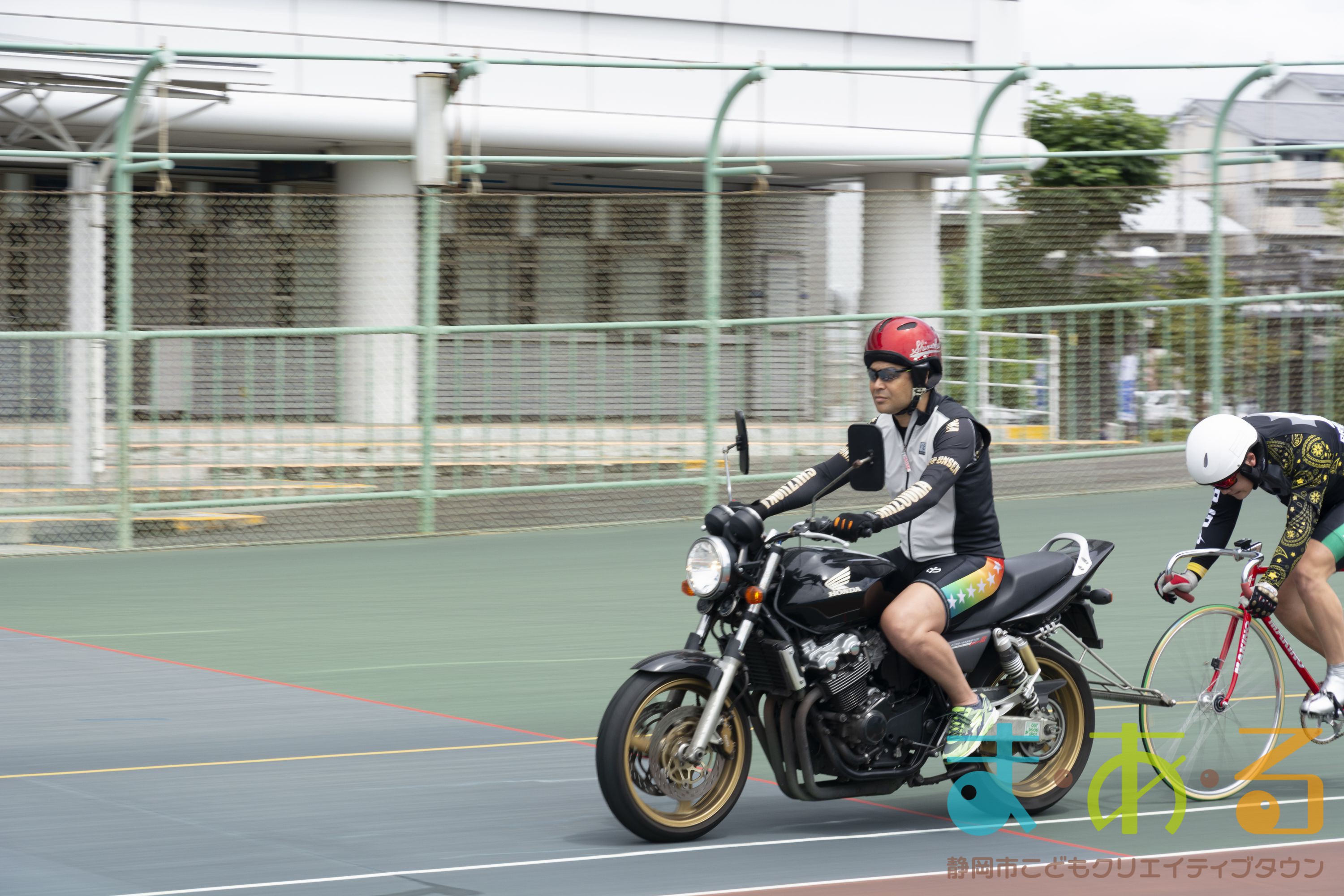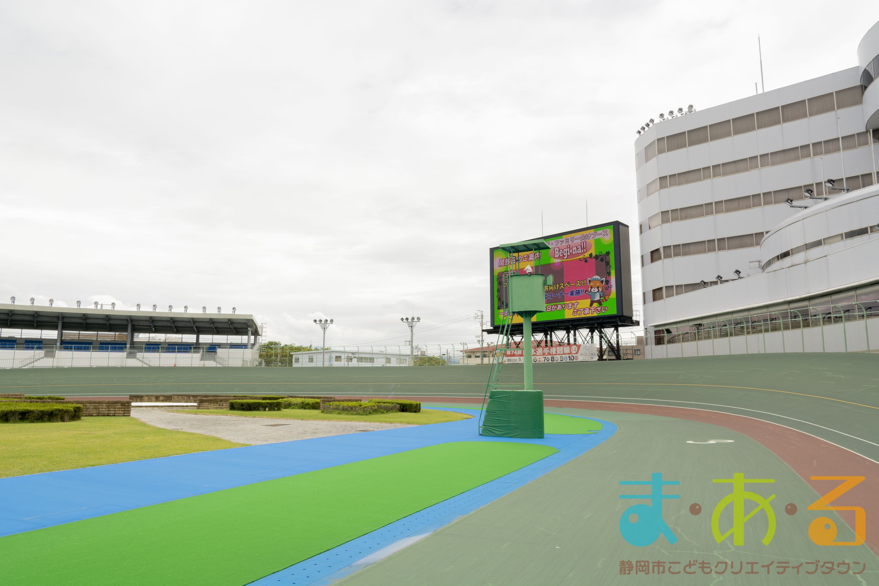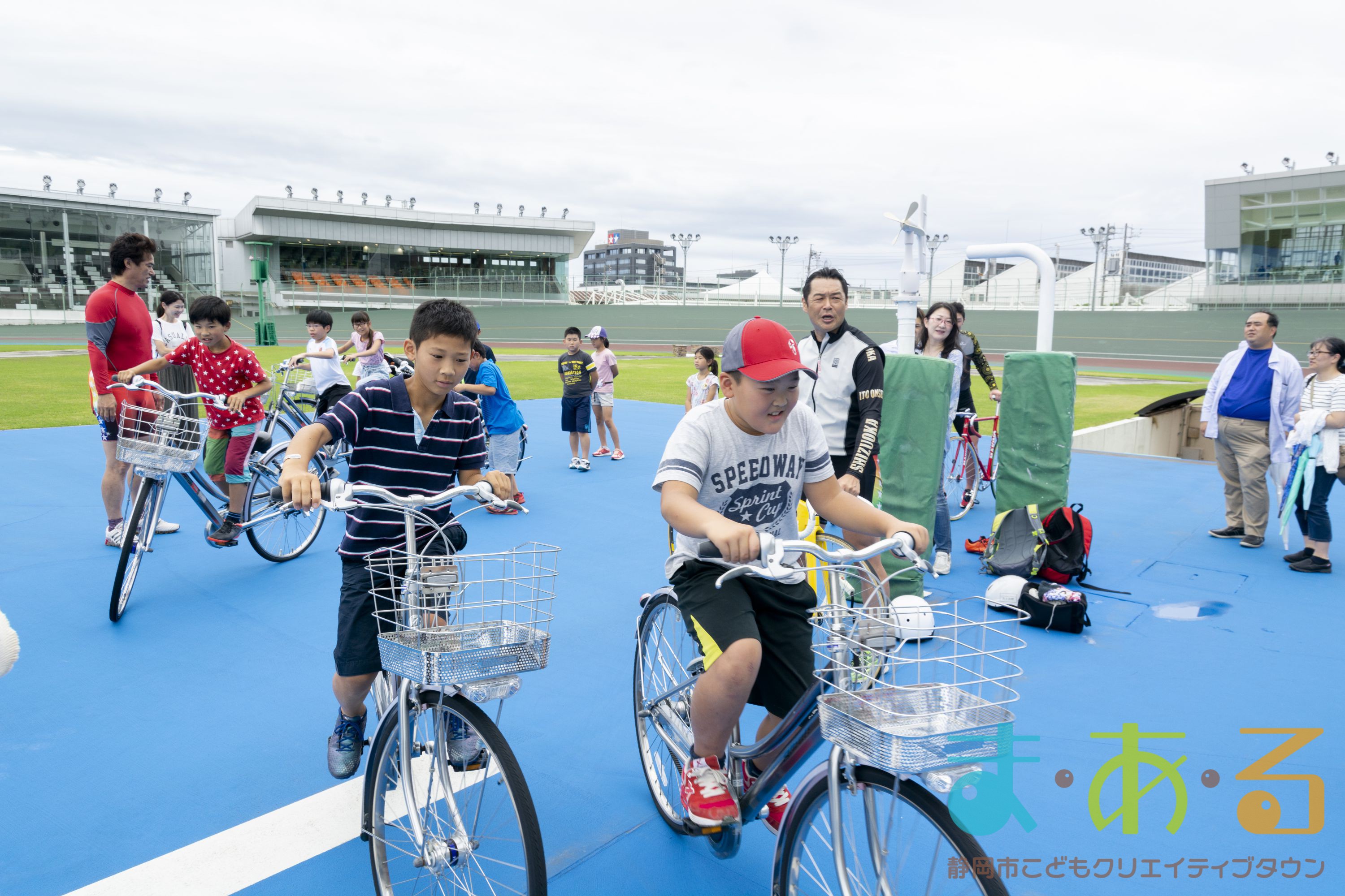 競輪選手が走るとすぐ戻ってくるコースでも、こどもたちが走るとすごく時間がかかります。