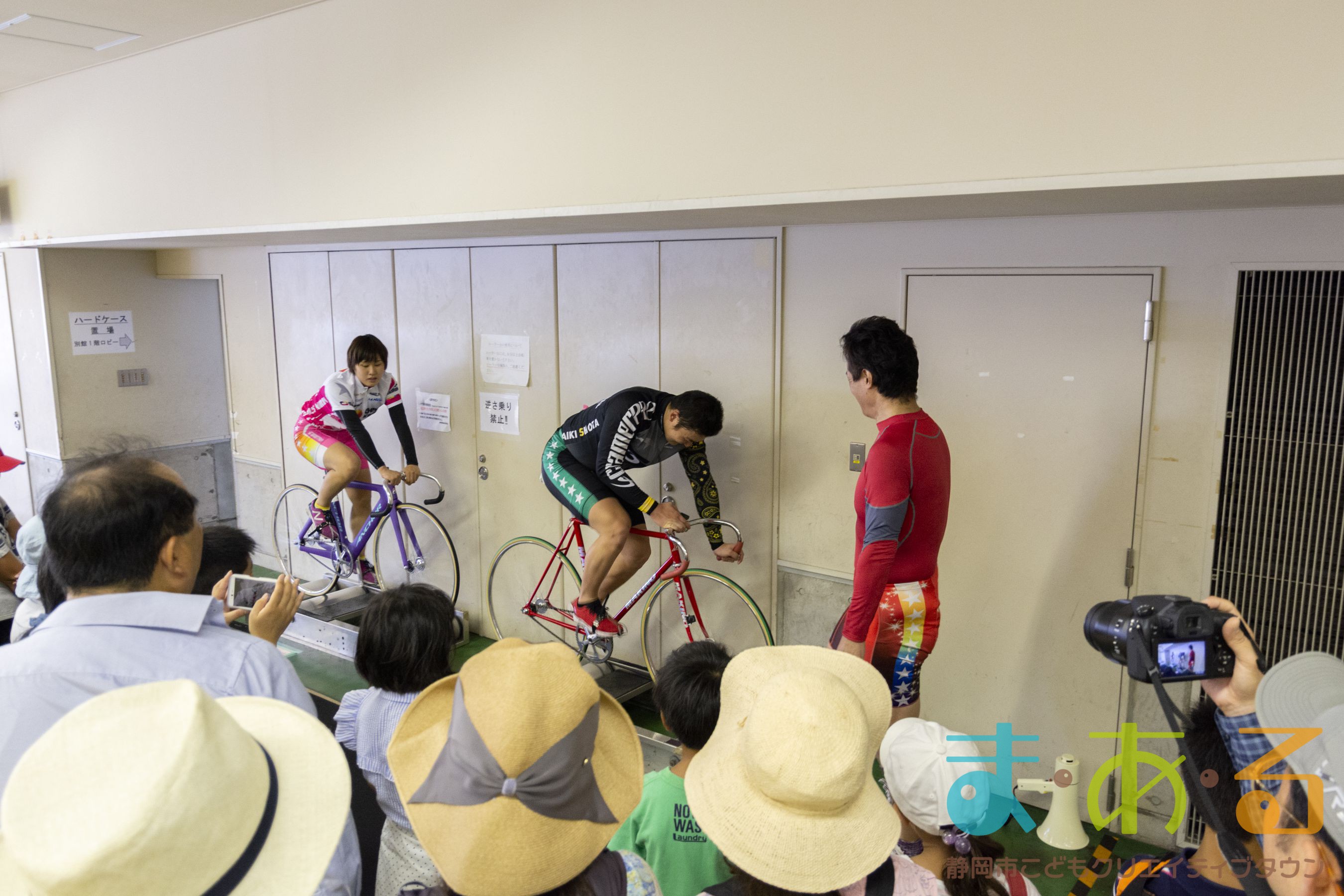 まずは競輪選手のスピードを実感してもらうために、普段行っているバイクを使った練習を再現してもらいました。