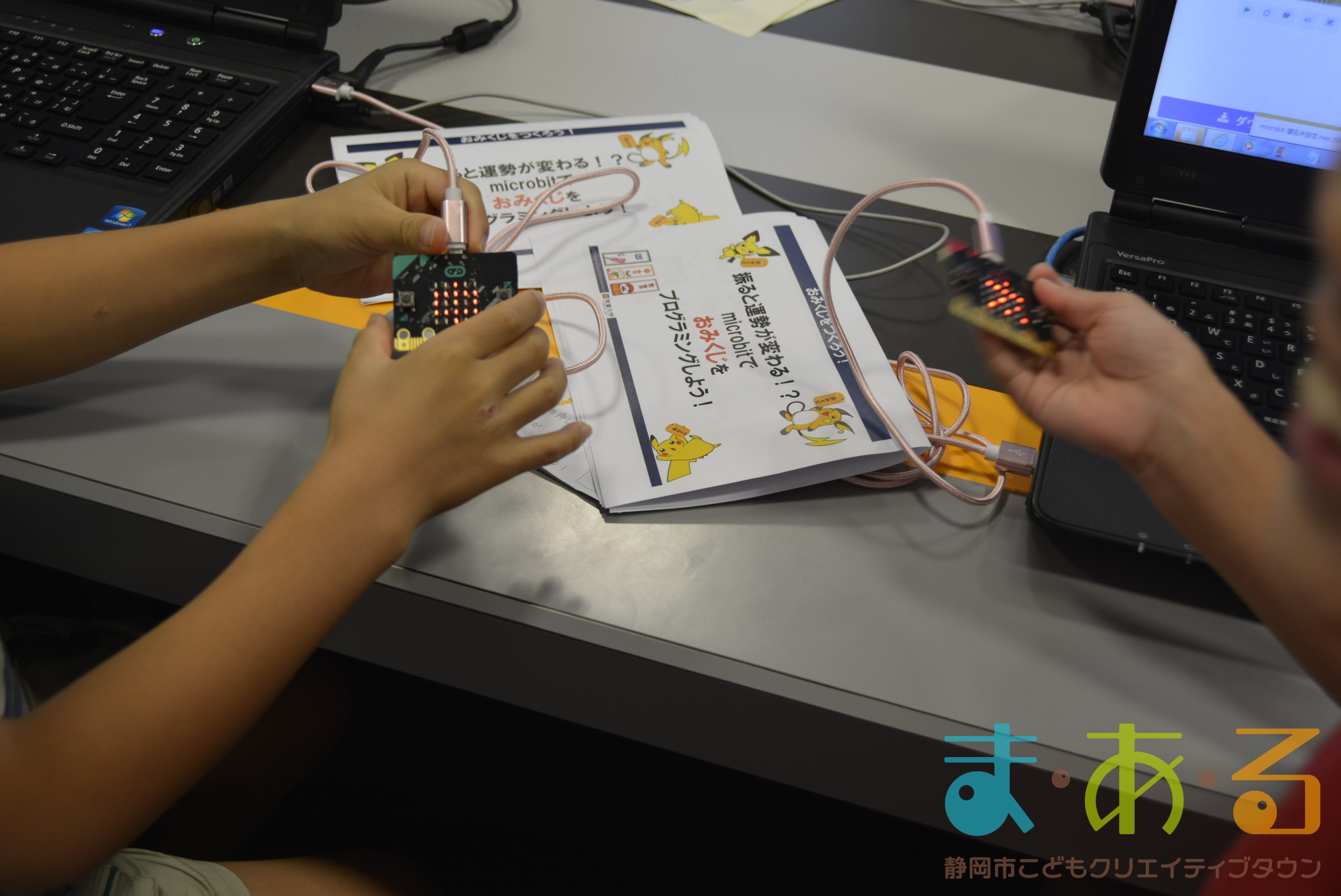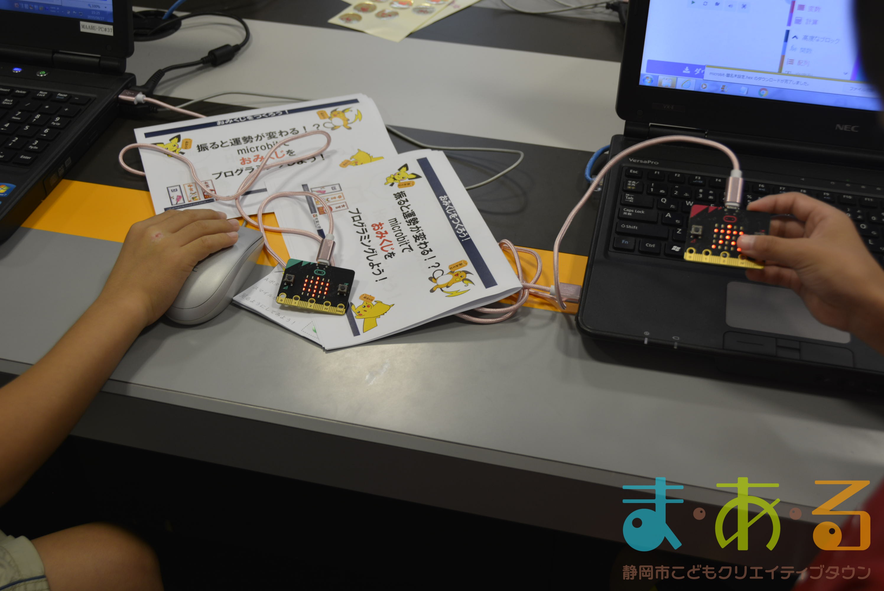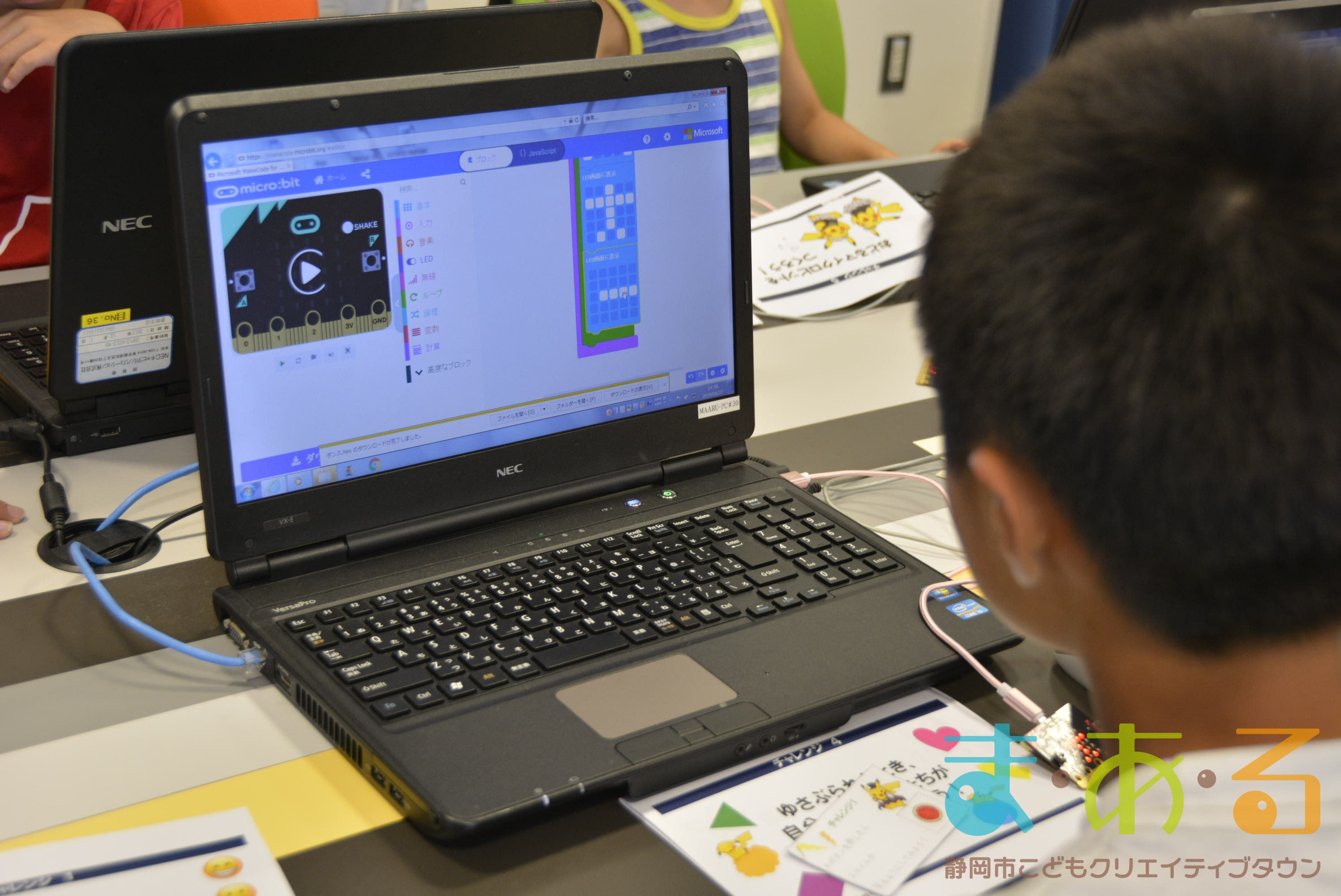 デジタル工房で行われたのは、「micro:bit」を使った講座です。「micro:bit」は、小さなコンピューターで、世界中でプログラミング教育に使われているものです。