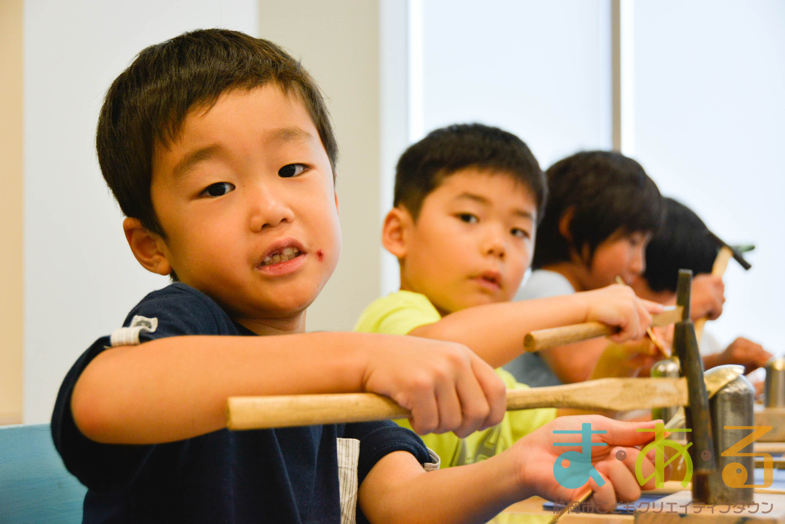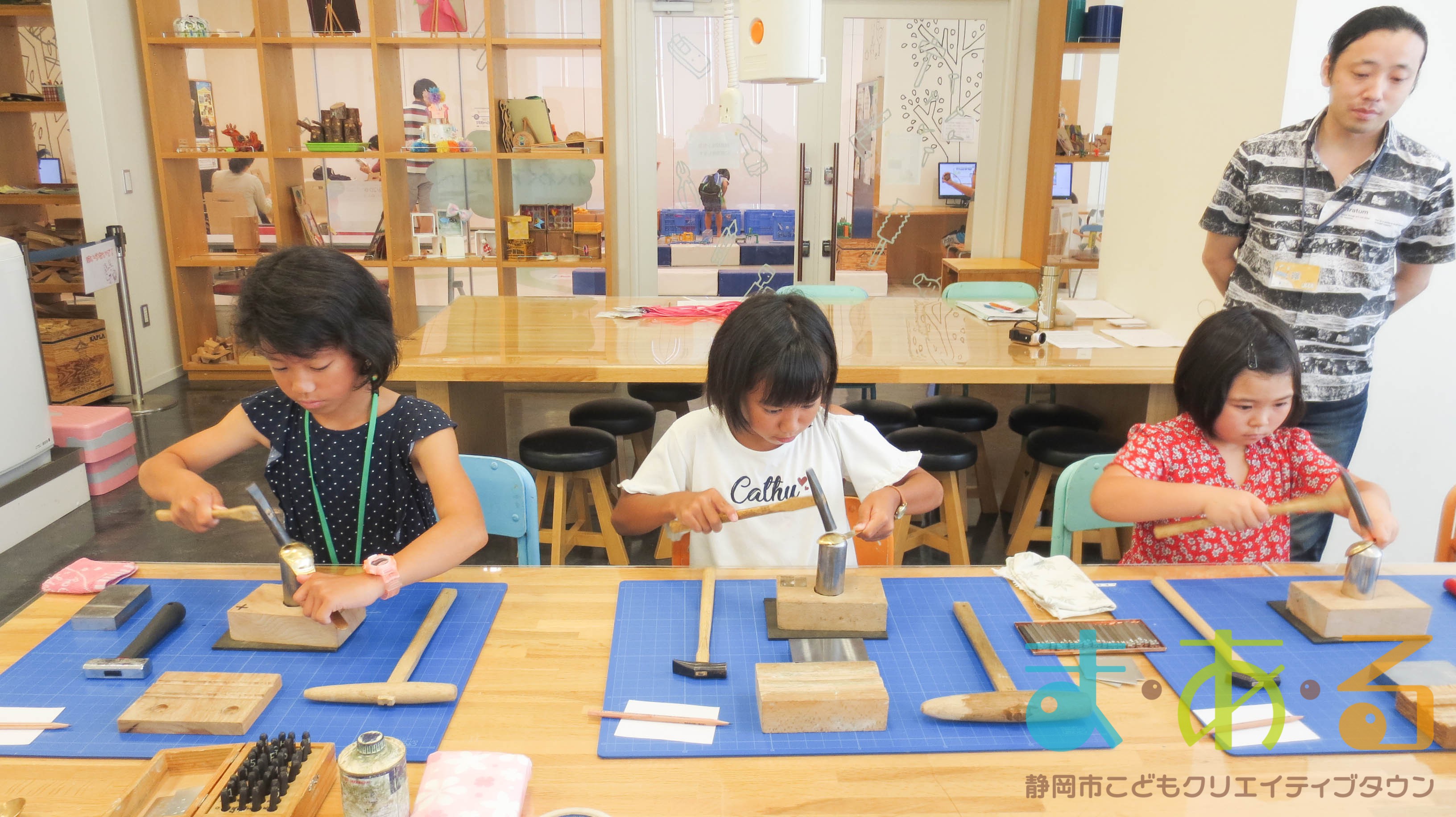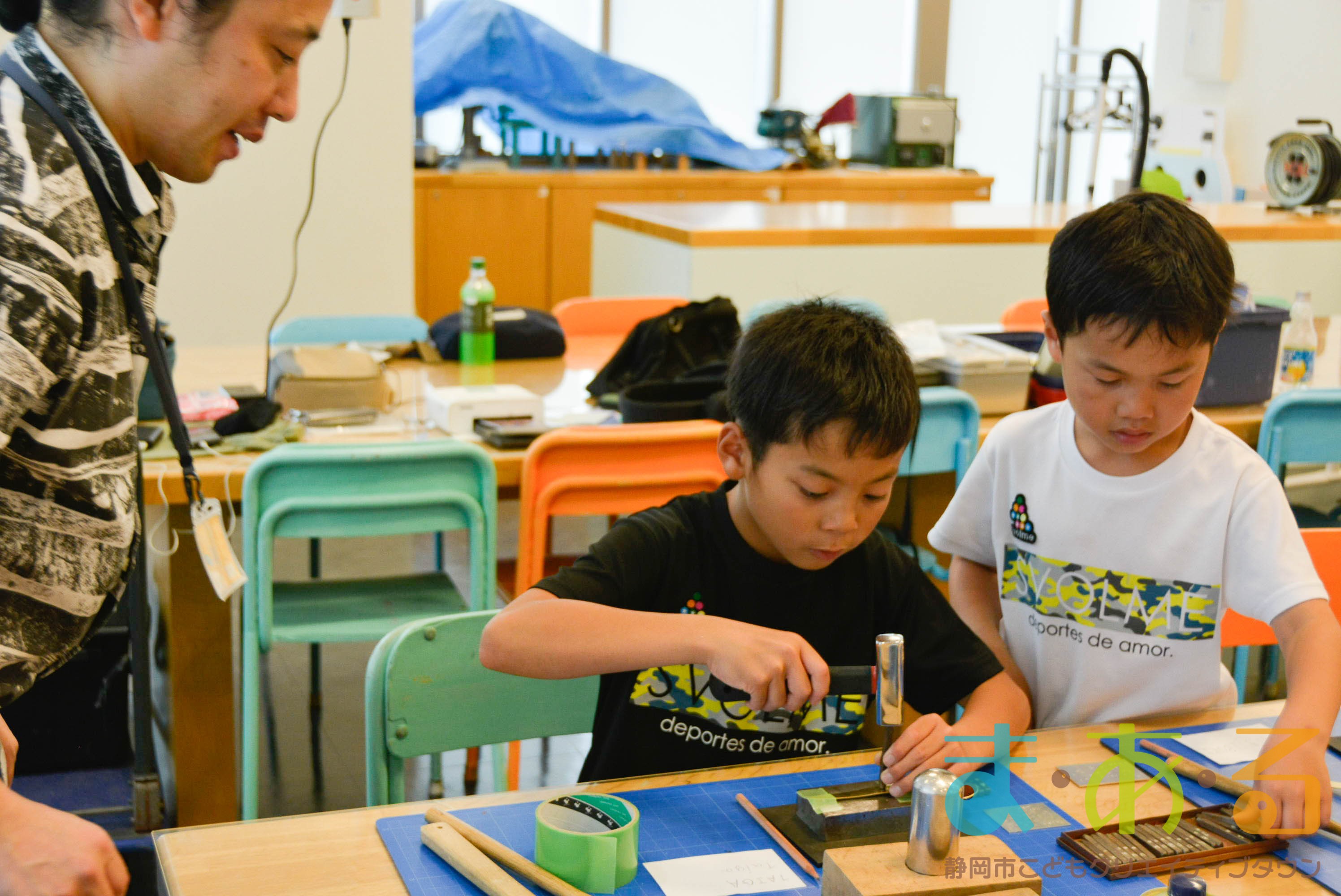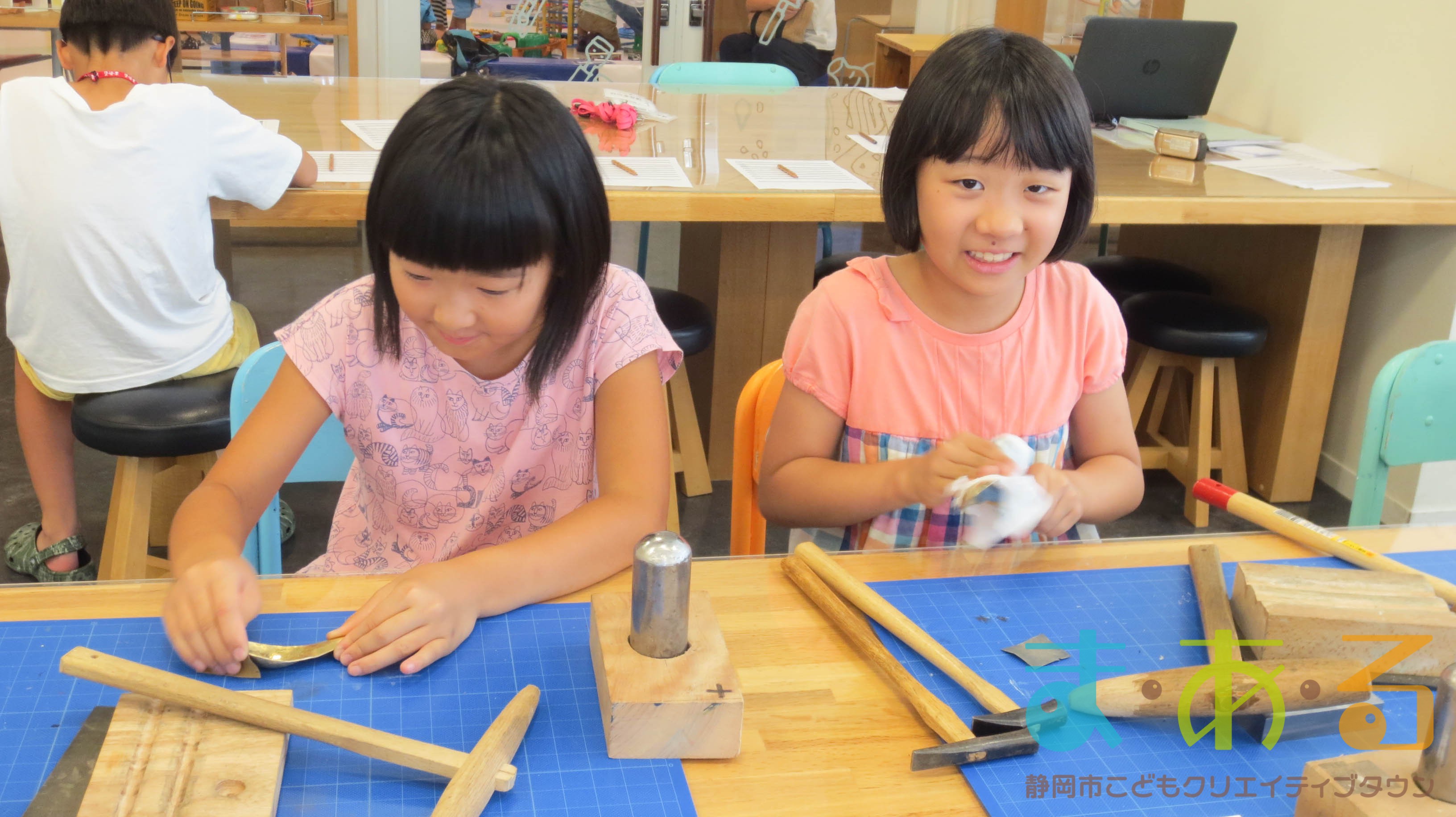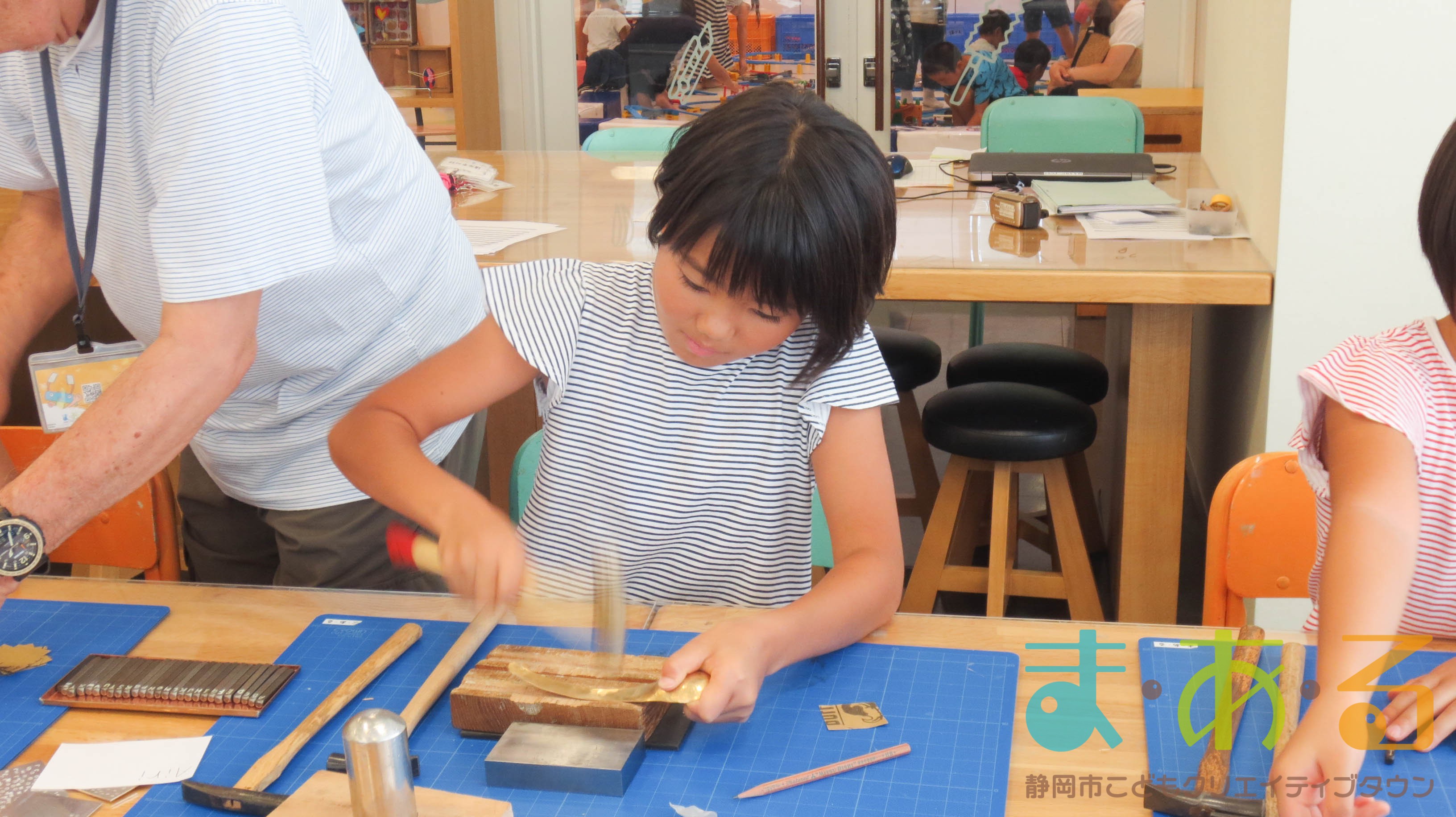 まっすぐに打たないと文字がずれてしまうので、慎重かつ思い切って刻印を打っていきます。「きれいにできたよ!」「みてみて!」とニコニコしながら見せてくれる子もいました。